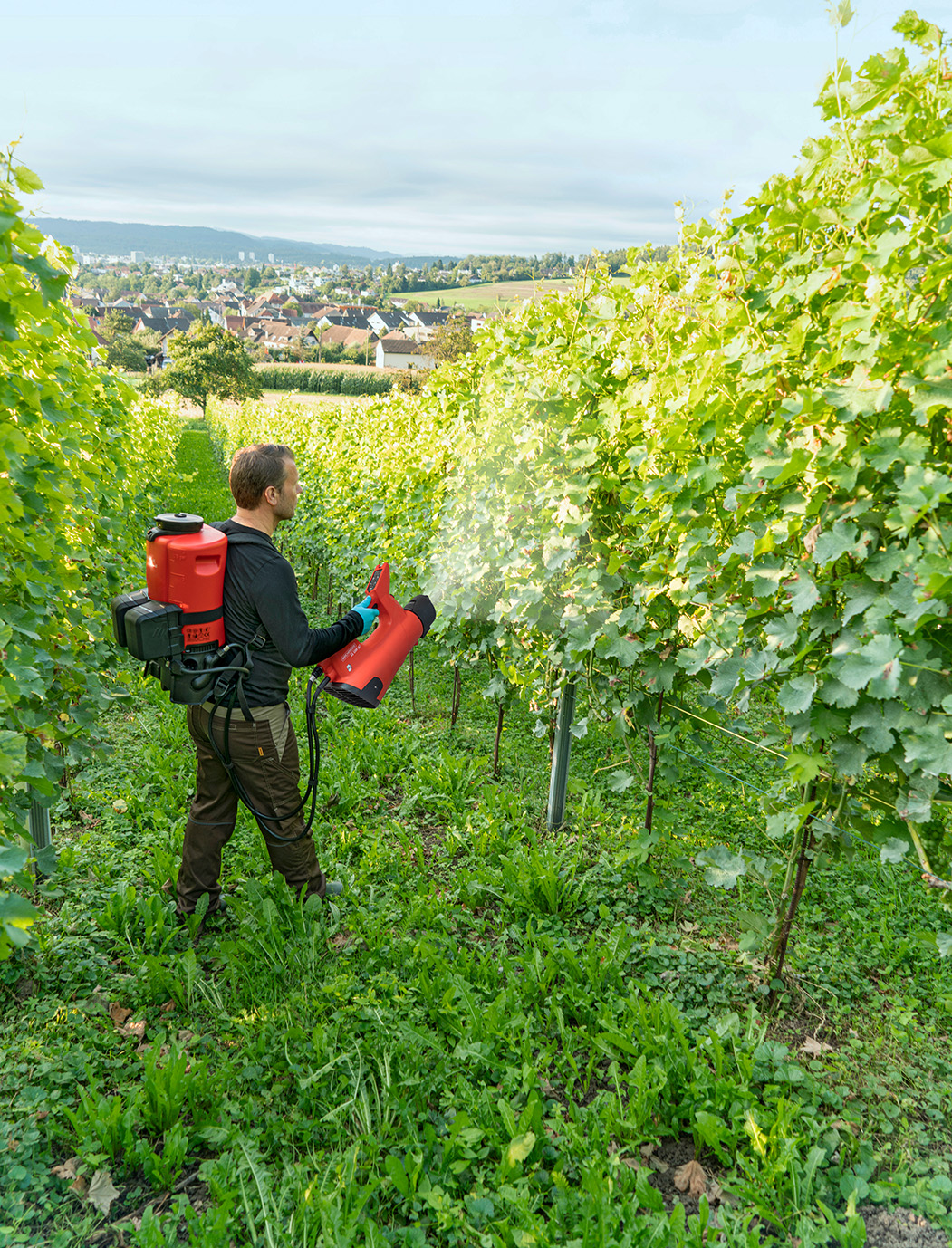 Een nieuwe manier van bestrijden van insecten en beschermen van gewassen; spuiten met luchtondersteuning en vloeistoftoevoer onder gecontroleerde druk. Een nieuwe technologie van Birchmeier voor vele toepassingen. Grote spuitafstanden kunnen worden bereikt met een minimaal verlies aan spuitoplossing door een variabele luchtstroom te gebruiken, en daarin gecontroleerd spuitoplossing in te spuiten. De luchtstroom zorgt er ook voor dat de beoogde bladeren bewegen, voor optimale bevochtiging en penetratie van het middel in planten en struikgewas. De AS 1200, aangedreven door een extra oplaadbare accu, wordt gecombineerd met een spuit uit de «Accu-Power»-serie. De nevelblazer is buitengewoon krachtig, eenvoudig te bedienen en indrukwekkend stil. Daarom is de AS 1200 veel meer dan een gewone mistblazer.